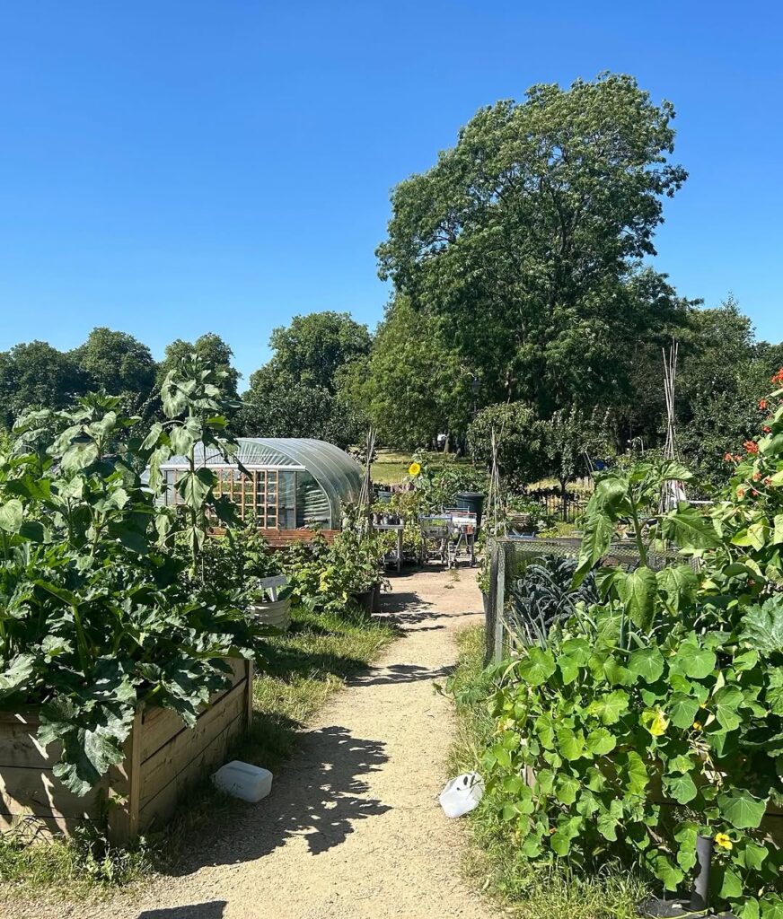 Today, the site includes vegetable plots, fruit beds, seasonal planting and a distinctive field kitchen all maintained and run by local volunteers.